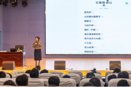 讲座最后,徐方对本次活动进行点评,充分肯定了此次心理健康课程教学改革实践的相关探索,并结合自身经历,向同学们分享适应与成长方面的相关感悟,提到要趋利避害、辩证看待问题,为自身的成功与进步积累力量。点评过后,徐方还带领现场师生开展互动活动。她引用毛泽东诗词《忆秦娥・娄山关》,通过手势动作引导师生熟悉旋律,随后带领全场共同吟唱。诗词的内涵与音乐的感染力相结合,与本次“心理适应与成长”的讲座主题形成呼应,获得现场师生掌声。