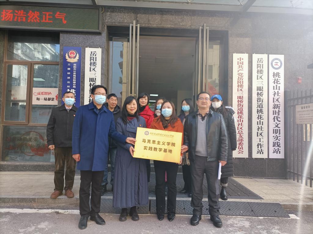 而在前一天,马院还在岳阳楼区三眼桥街道桃花山社区举行了实践教学基地授牌仪式。该院院长姚霞、党支部副书记陈辉、三眼桥街道办事处副主任余丽敏、桃花山社区书记李魁岸及该院青年教师参加了仪式。