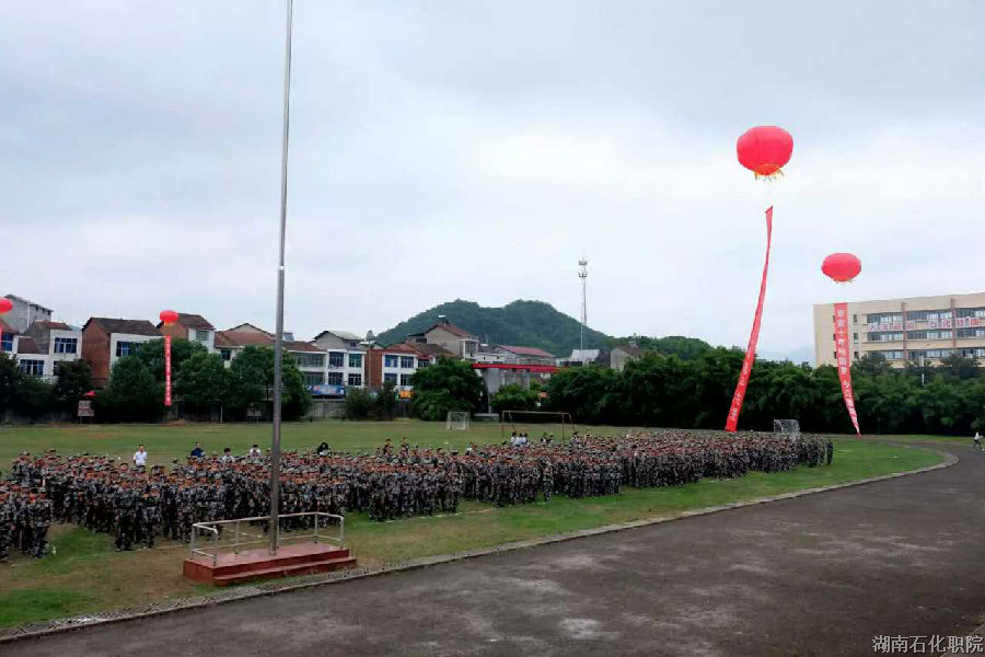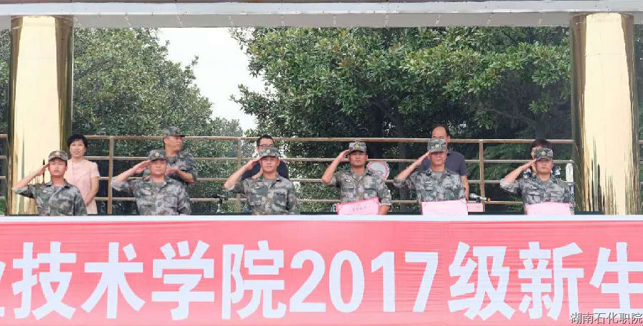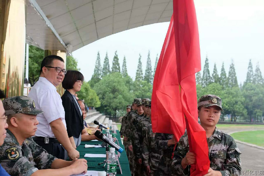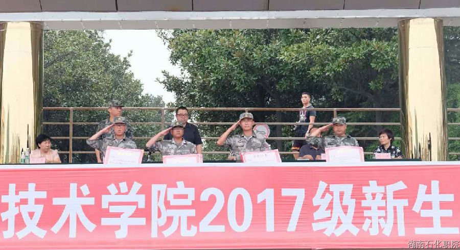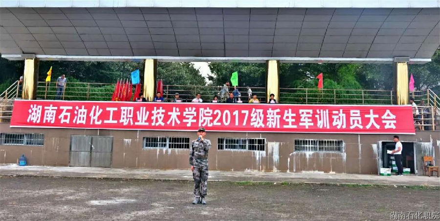 9月4日下午,学院在田径场组织召开2017级新生军训动员大会。出席会议的领导有:学院党委书记雷放华同志、学院院长徐方同志、中国人民解放军湖南陆军预备役步兵师第三团参谋长谢伟雄同志、学院副院长孙雷同志、学院副院长刘滔同志、学院副院长郭丽荣同志、学院副院长符文文同志、学院纪委负责人刘三青同志,副院长孙雷同志主持会议。大会进行了奏国歌、升国旗;新生代表发言;参谋长谢伟雄同志讲话;学院院长徐方同志讲话;学院雷书记、徐院长授连队旗等环节与仪式。并由学院党委书记雷放华同志宣布:湖南石油化工职业技术学院2017级新生军训正式开始。