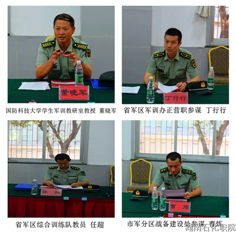 9月6日上午,中国人民解放军湖南陆军预备役步兵师师长刘亚兵一行莅临我院督察军训工作。9月15日下午,我院迎来国防科技大学学生军训教研室教授董晓军、省军区军训办正营职参谋丁行行、省军区综合训练队教员任超、市军分区战备建设处参谋曹炼等领导来校督察军训工作,并举行了座谈会。学院副院长孙雷同志、教务处处长黄建华同志、武装部部长湛佳同志、石化技术工程系党支部书记刘顺清同志、石化管理工程系党支部副书记王列明同志出席了座谈会。