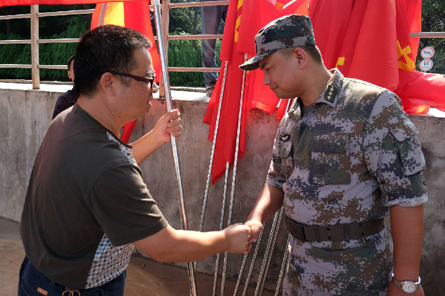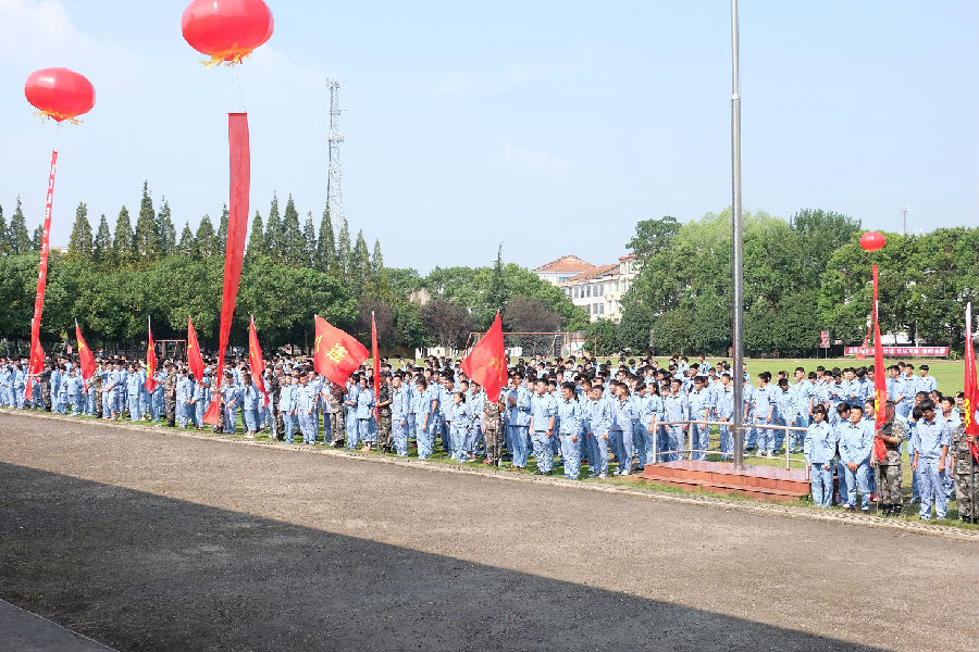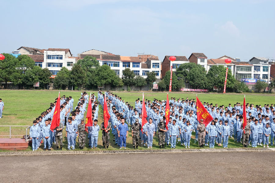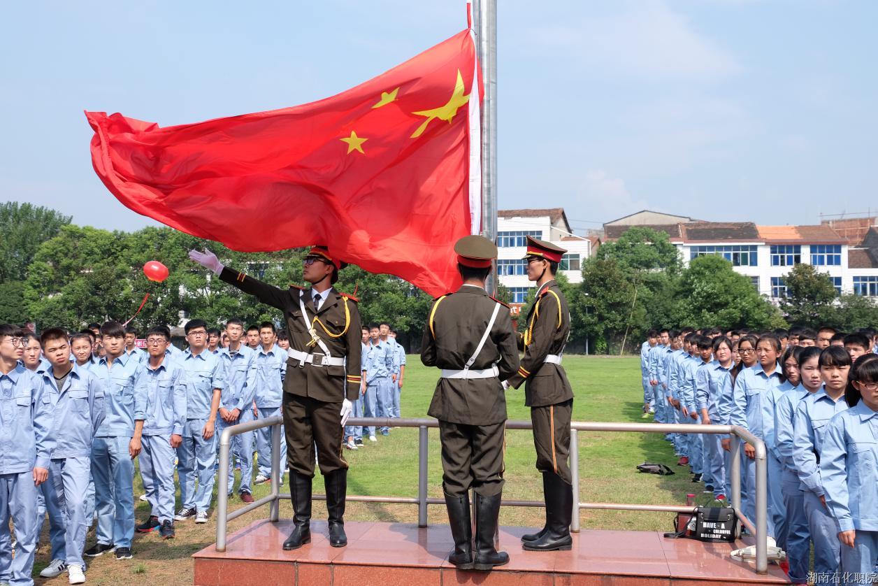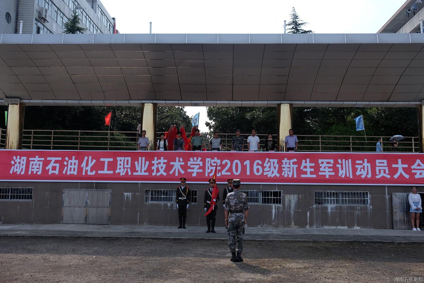 随后,学院党委书记雷放华同志向各连队教官授予军训连旗,并宣布“湖南石油化工职业技术学院2016级新生军训正式开始”。