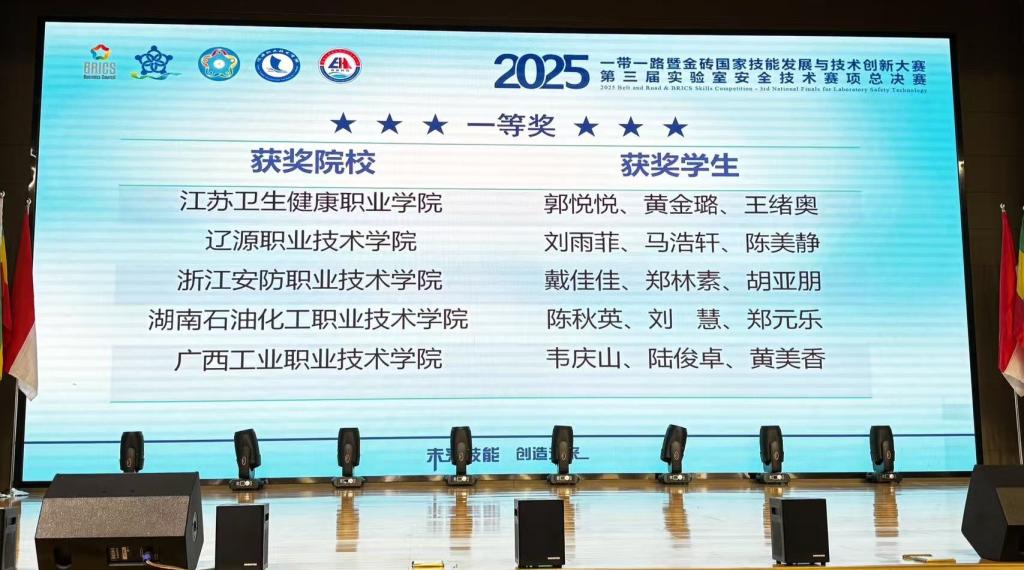 喜 报:我校学子在2025一带一路暨金砖国家技能发展与技术创新大赛第三届实验室安全技术赛项中斩获团体一等奖!学校荣获最佳组织奖! 我校代表队成员:分析32402班陈秋英、环境32301班刘慧、郑元乐。(指导教师:张晓磊、雷小佳)