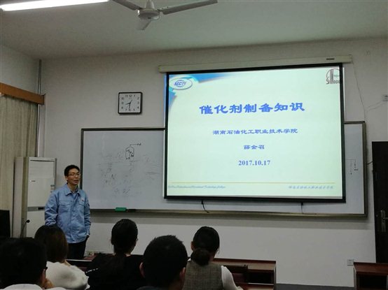 薛金召老师在为催化剂制造工学员培训催化剂制备知识