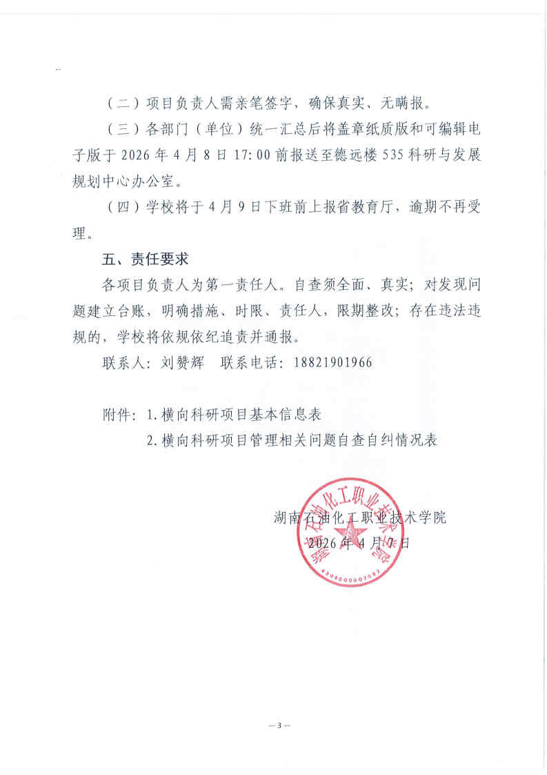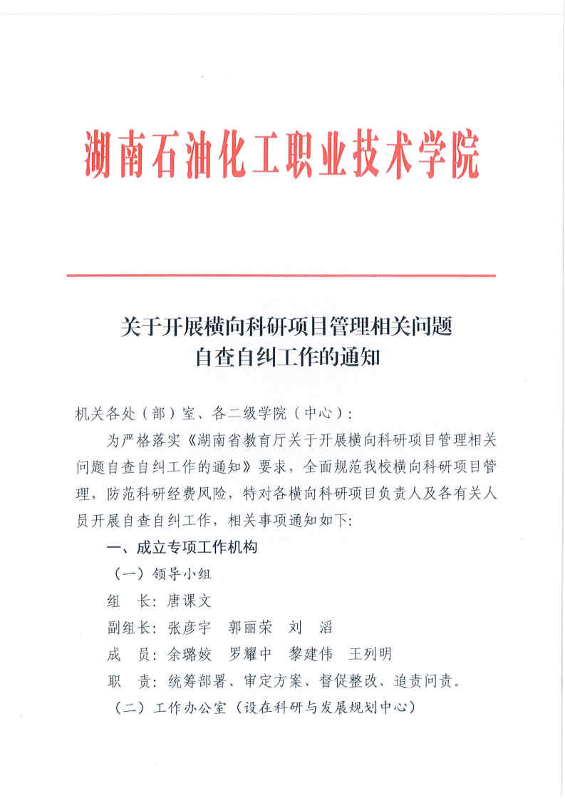 湖南石油化工职业技术学院关于开展横向科研项目管理相关问题自查自纠工作的通知