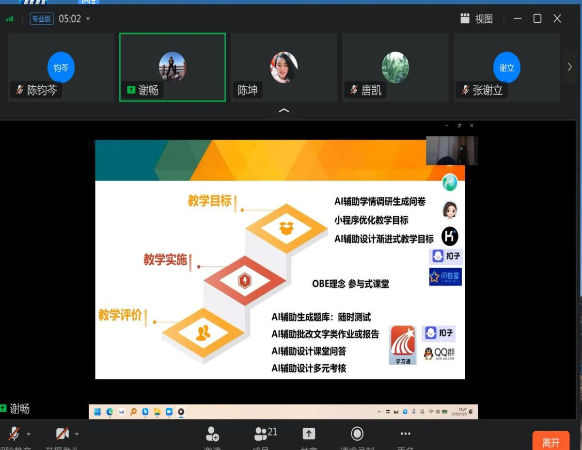为推动AI技术与思政教学深度融合,提升思政教师教学创新能力,2026年1月20日,湖南石油化工职业技术学院马克思主义学院组织全体思政教师开展线上专题培训。本次培训特邀西北农林科技大学教学发展中心课程思政培训团队寇小希老师线上主讲,学院副院长(主持工作)谢畅主持,全体教师齐聚云端,共探智能赋能思政育人新路径。