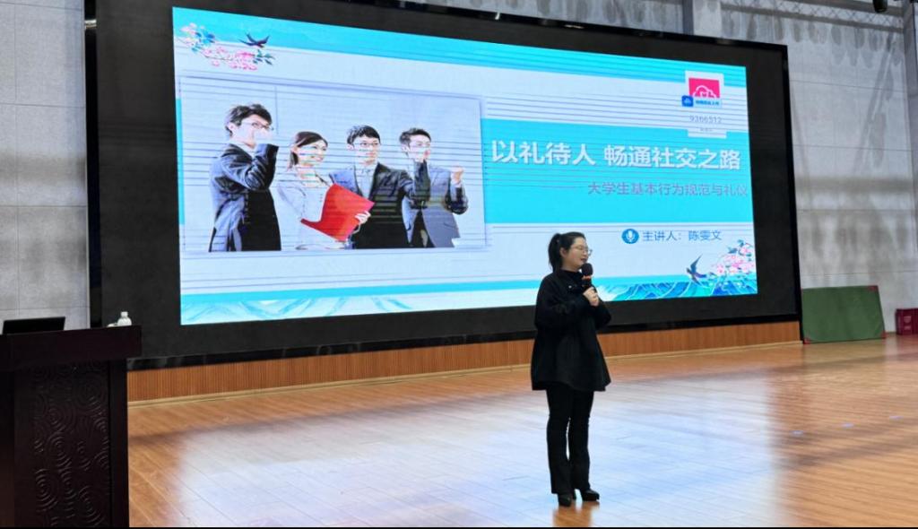 “礼仪,始于敬畏,归于自觉。”培训主讲人、人文学院艺术教研室主任陈雯文从国家礼仪的宏大叙事,到校园、家庭、社交的生活场景,再到职场竞争的实战技巧,系统地为同学们勾勒出一幅清晰的“礼仪素养地图”。现场同学纷纷表示,这场讲座让他们意识到,礼仪不仅是礼貌,更是未来职业发展中不可或缺的“软实力”。