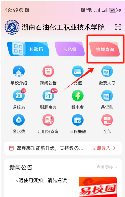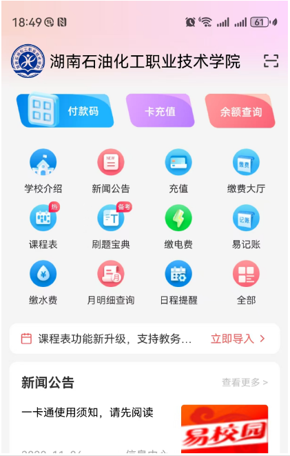 一、下载易校园电子校园卡:在各大手机应用商店市场→查找“易校园”→安装